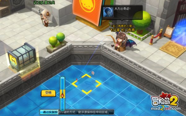 都说钓鱼是消磨时间的最好方法,在冒险岛2的世界里也是一样,这绝对是一个超级休闲的玩法。买上一根鱼竿,随便找一处水渠,双击你的鱼竿,调整好下勾的位子,就可以开始你的钓鱼生涯了。在等鱼上钩的时候,可以约上三五好友一起聊聊天,是不是很惬意呢?