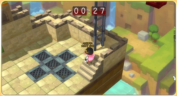 上岸后我们会来到本图第一个陷阱所在地,先行通过的玩家可以操作机关让陆地消失,而露出的水面会阻碍玩家前行,而后来的玩家不论是从水里前进还是从旁绕行都会耽误时间。