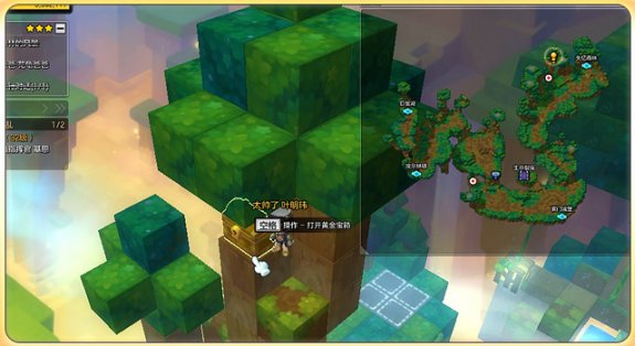 在宝箱二不远处还耸立着一颗树木,站在树梢上就能瞧见后面的宝箱箱盖。