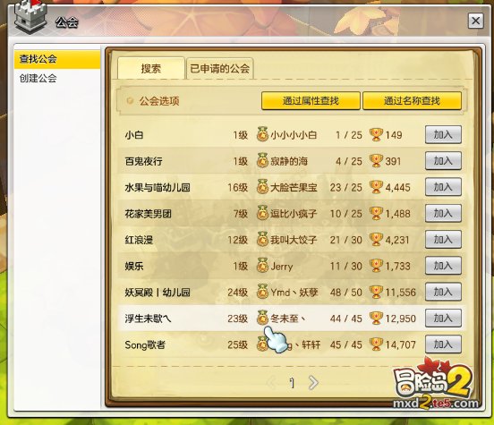 如果想加入一个公会,那么直接通过名称查找即可,申请之后需要等待会长的审核通过哦